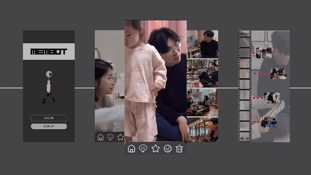 MEMBOT is a smart video producing system. It consists of an angle changable product, user friendly interface, and artificial intelligence based on face tracking & emotion recognition. With MEMBOT, a user can get memorable 1~2 min videos which are recorded by the product and edited by MEMBOT AI. There is no labour-intensive or time-comsuming work to get valuable videos of gathering moments with family, friends.